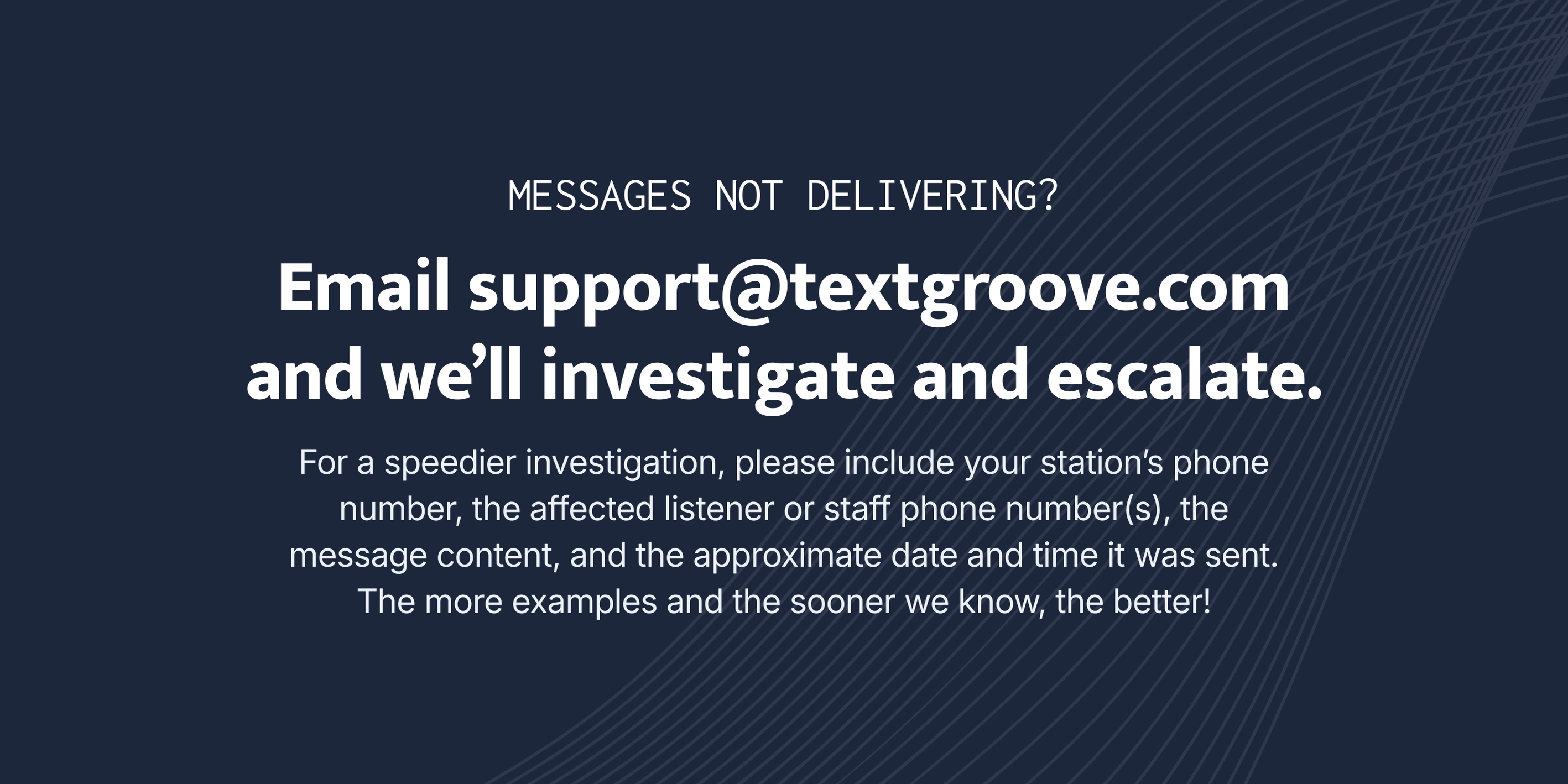 If you’re ever on the fence, send us a note at support@textgroove.com. We’re broadcast nerds who love clean deliverability and making your life easier. For anything legal, we recommend consulting your legal team.